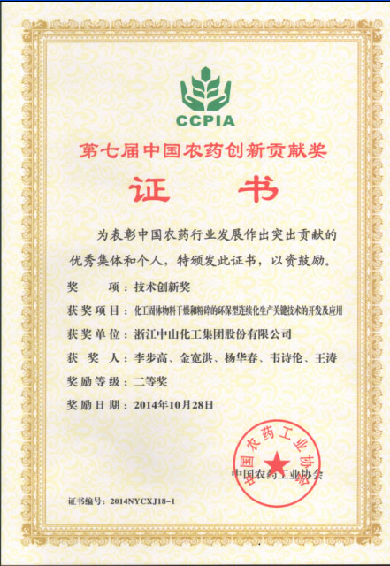 中國農(nóng)藥創(chuàng)新貢獻(xiàn)獎-公司